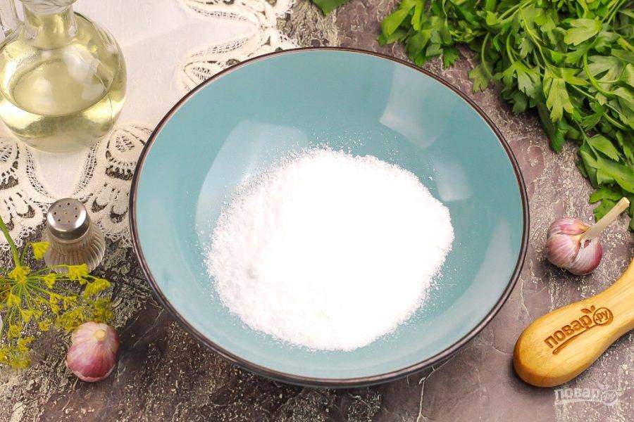Всыпьте соль в миску или салатник, банку или чашку. Влейте туда же воду и тщательно размешайте, чтобы вся соль растворилась.