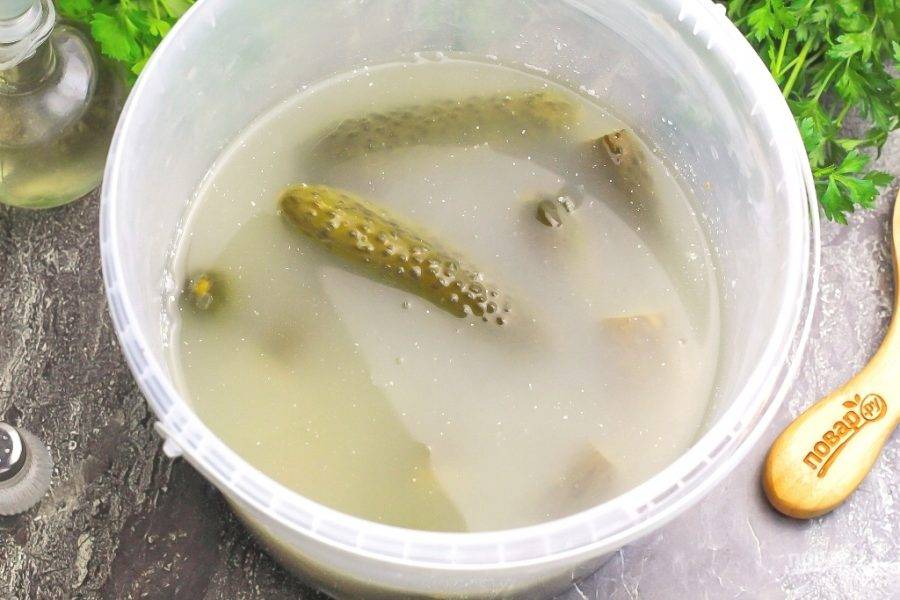 Залейте рассол в емкость на огурцы. Они сразу же всплывут и это нормально. Главное, чтобы она покрывала их.