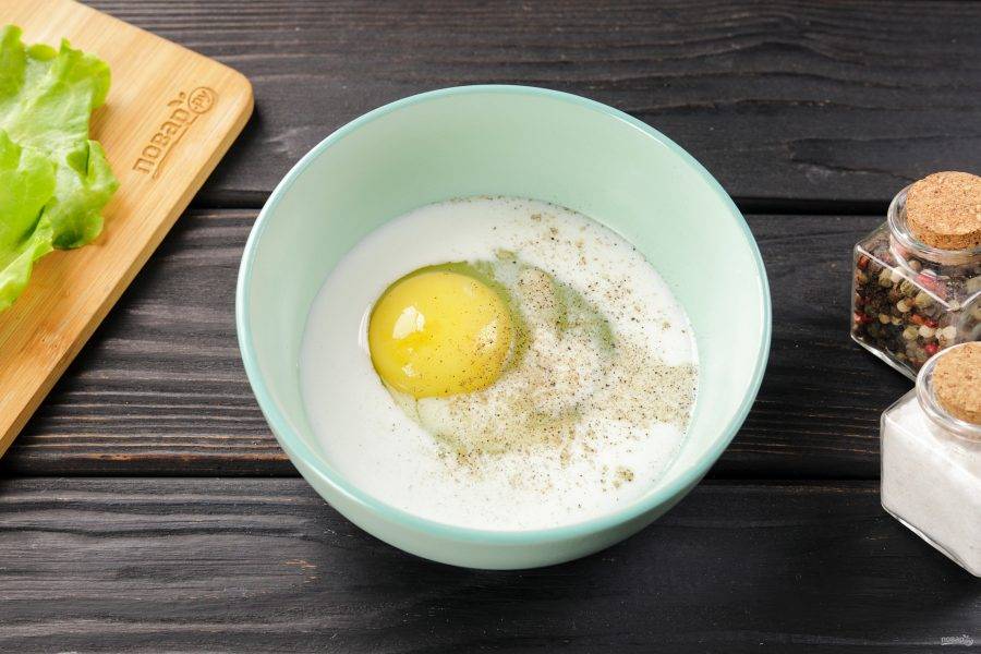Влейте молоко. Добавьте соль и перец по вкусу.