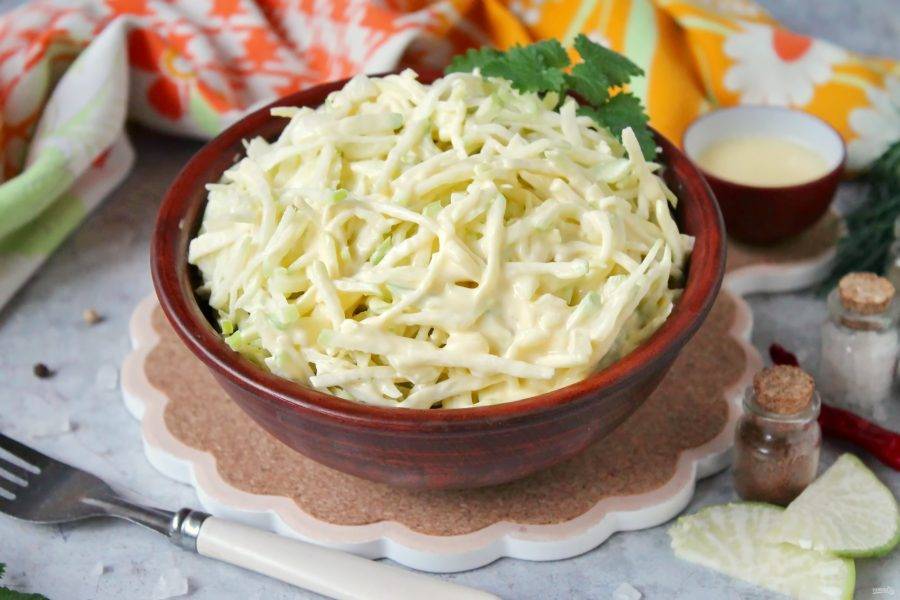 Блюда из редьки не частый гость на наших столах. Сегодня предлагаю приготовить простой и пикантный салат, который отлично разнообразит ваш обед. В нем нет дорогих продуктов, а получается очень вкусно!