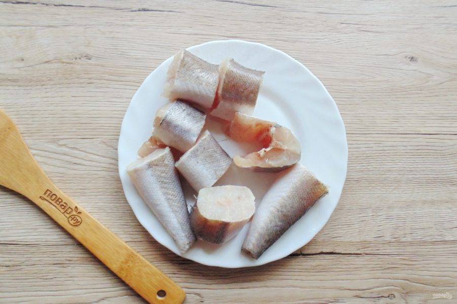 Тушки хека очистите от чешуи, помойте внутри и снаружи, удаляя черную пленку внутри.