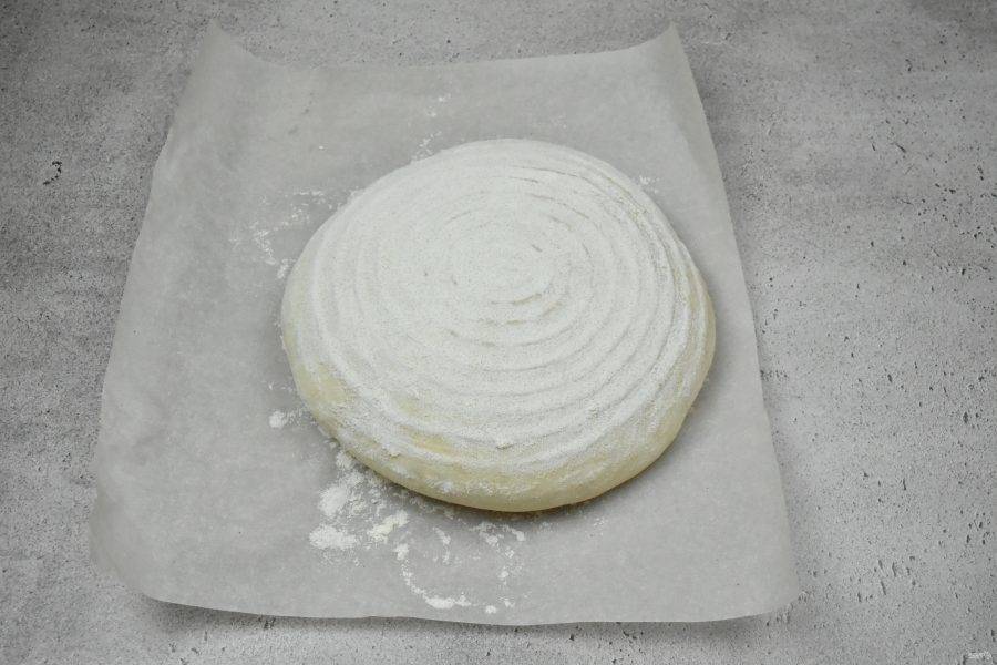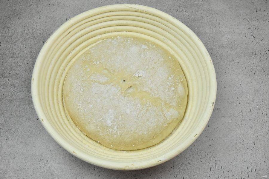 Накройте корзину льняным чехлом или салфеткой от подсыхания теста. Поставьте форму в холодильник. Расстройка при температуре 6-8 градусов может занять до 20 часов.