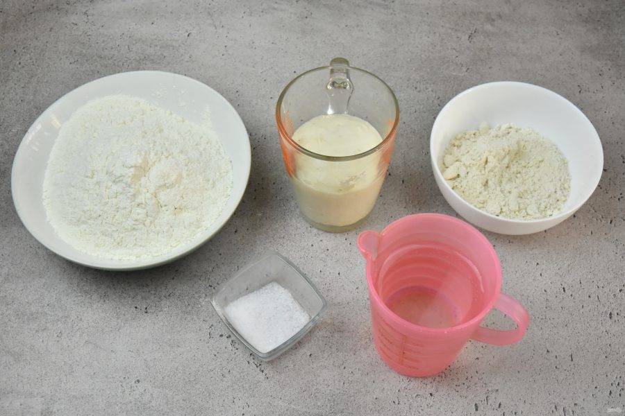 - Мука пшеничная 290 грамм 40 грамм — в опару, 250 грамм — в тесто, высший или первый сорт