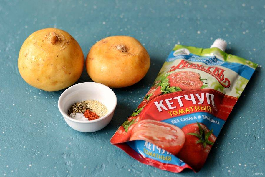 Чтобы приготовить репу фри, вам понадобятся следующие продукты. Заранее разогрейте духовку до 220 градусов.