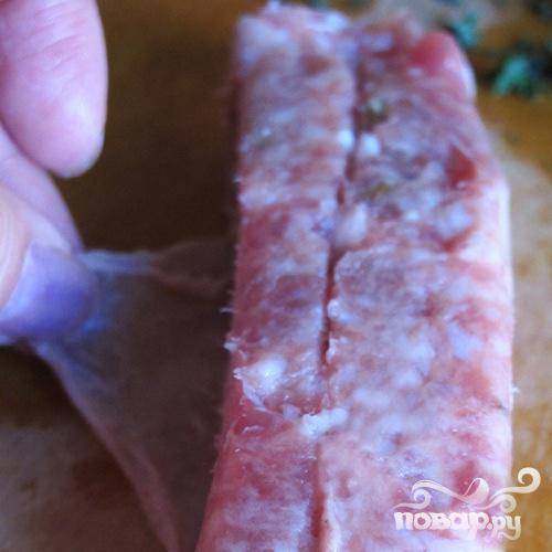 Удалить пленку с колбасок.