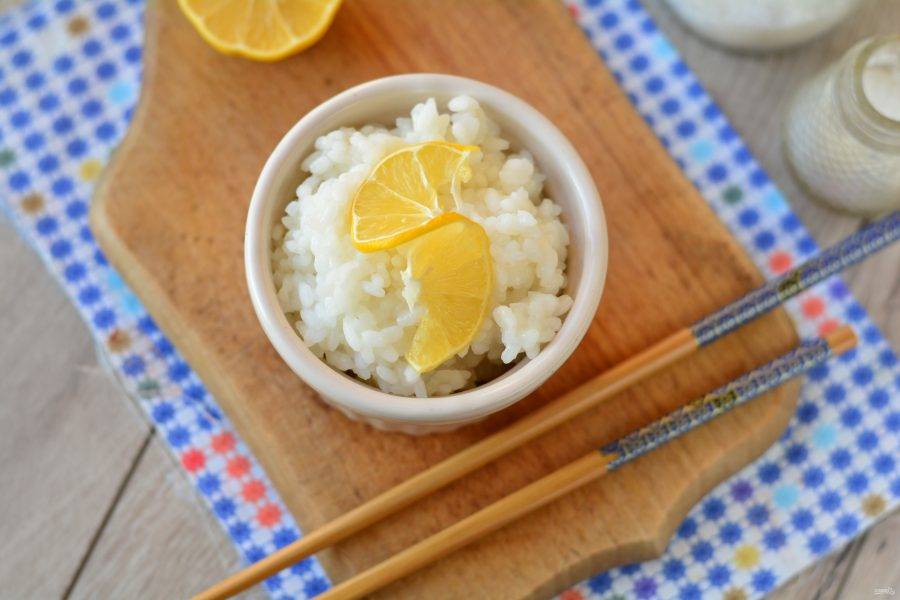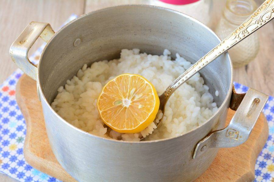 Полейте рис лимонным соком и перемешайте. Заготовка для роллов готова.