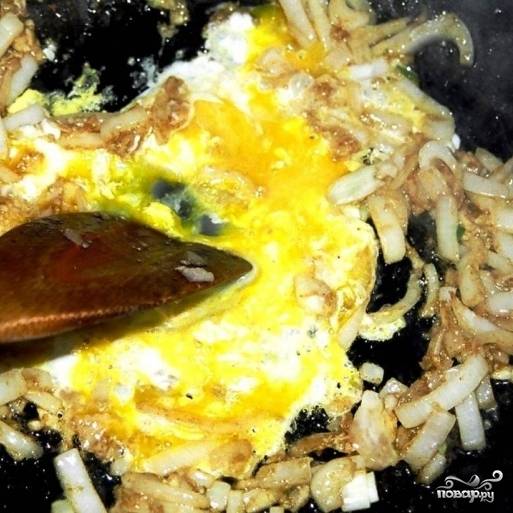 Разбиваем в овощи яйцо, быстро перемешиваем.