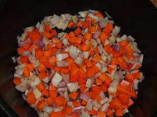 Лук обжарить с морковью до полуготовности. Добавить специи.