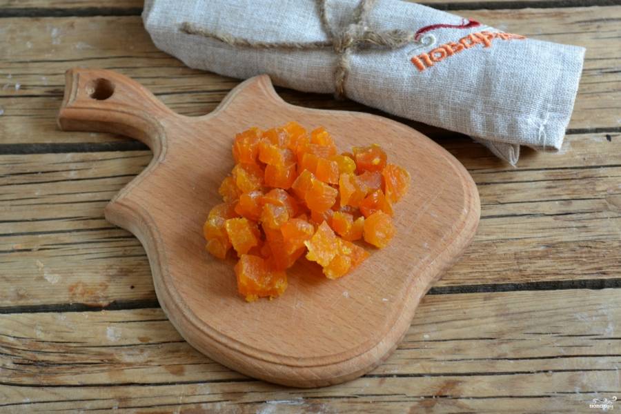 Курагу порежьте на небольшие кусочки.