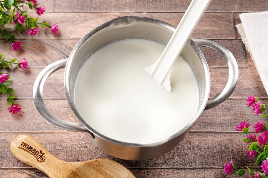 Влейте молоко.