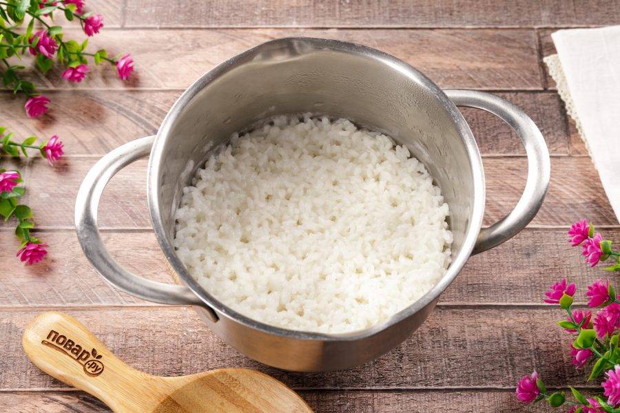 Варите после закипания 7-10 минут. За это время рис должен почти полностью впитать в себя всю жидкость.