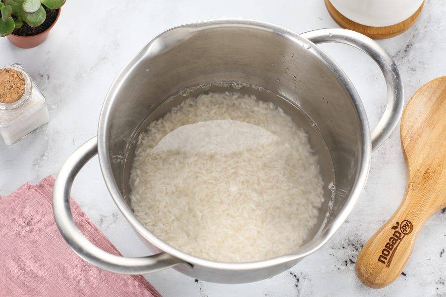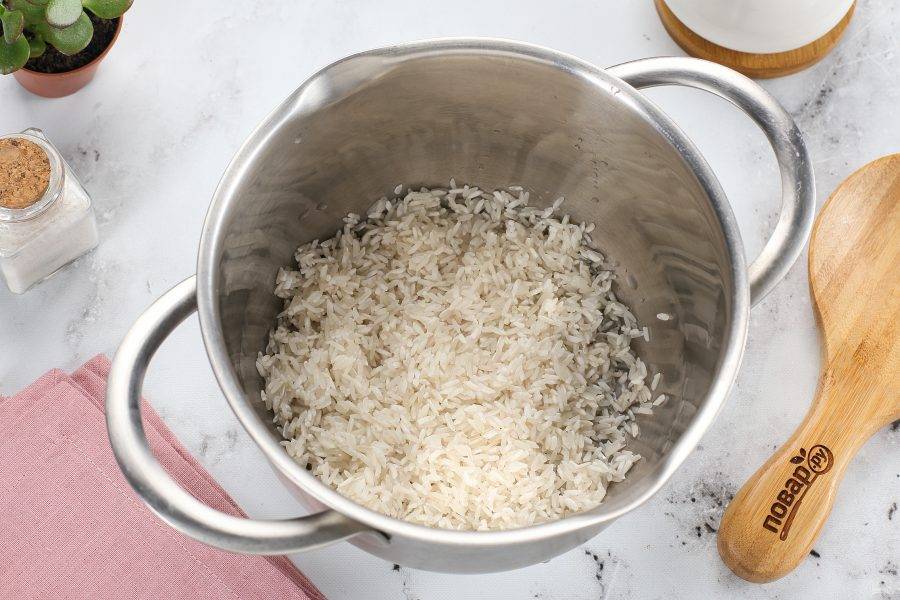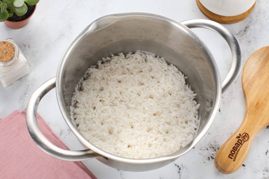 После закипания варите рис на небольшом огне, пока вся жидкость почти полностью не впитается.