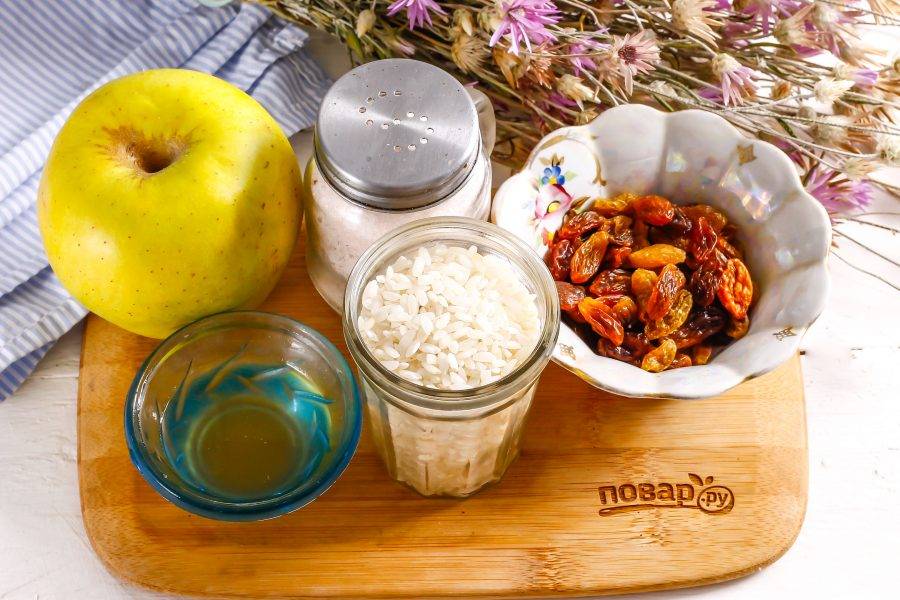 Рисовая каша с яблоками и изюмом