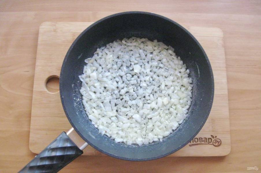 Поджарьте лук до прозрачности. Сильно зажаривать не нужно.