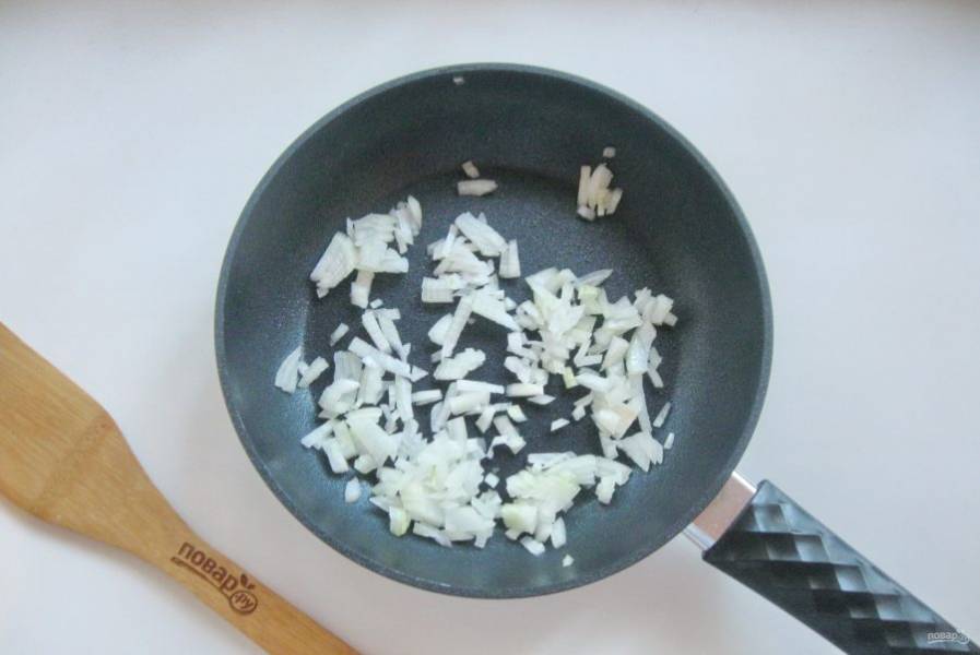 В сковороде растопите сливочное масло и налейте растительное. Выложите мелко нарезанный лук.