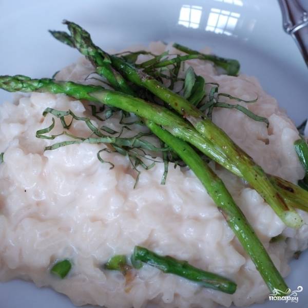 Подаем ризотто с обжаренной спаржей. Приятного!