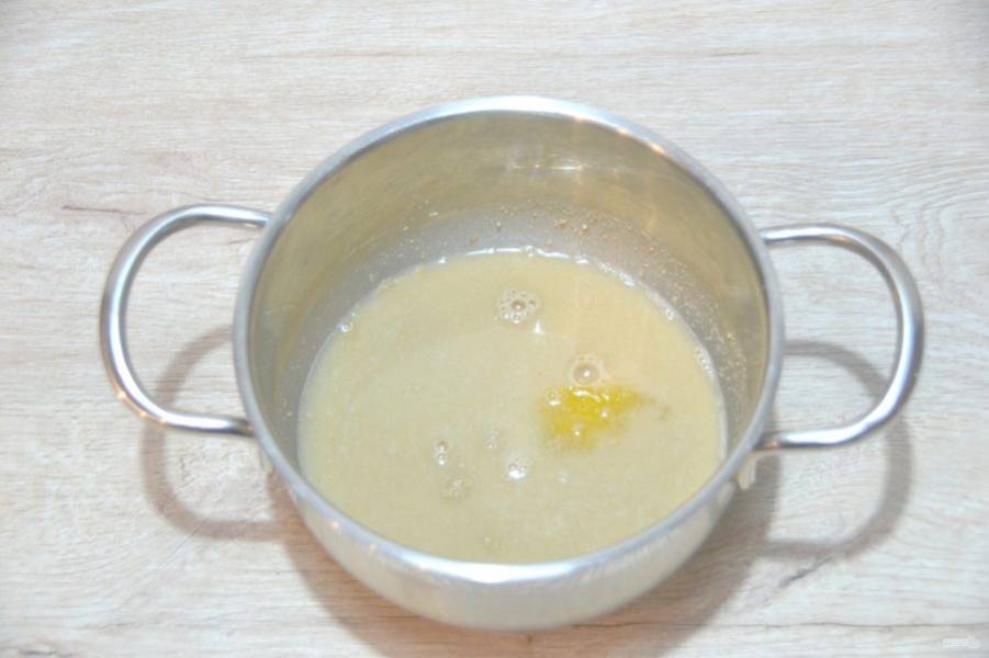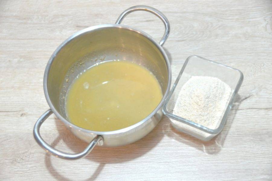Для замешивания теста влейте в миску 175 мл. воды, растворите соль, добавьте 1 ст. ложку меда.