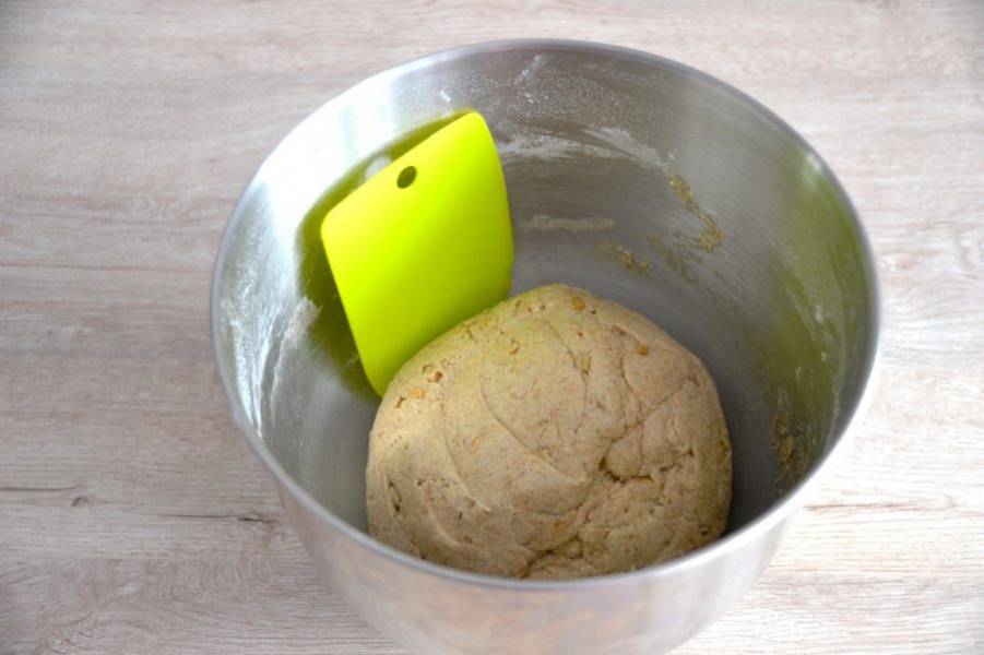 Соберите тесто в шар, накройте пленкой, поставьте в теплое место для брожения на 2-3 часа.