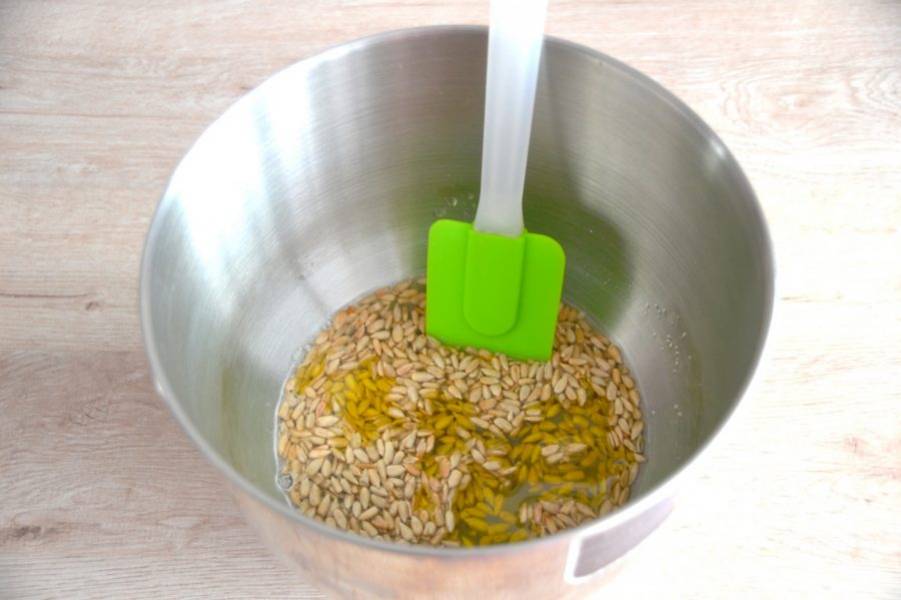 Добавьте 1 ст. ложку оливкового масла, семена подсолнечника (или тыквы), смешайте.