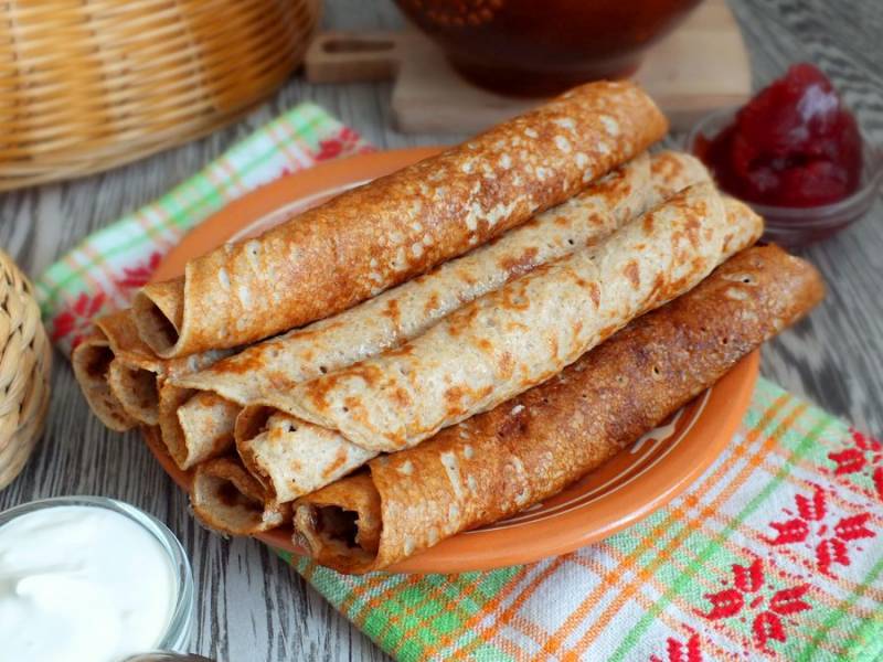Подавайте ржаные блины горячими с любимыми добавками. Приятного аппетита!