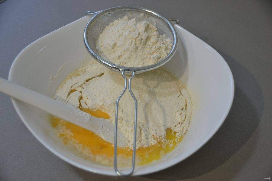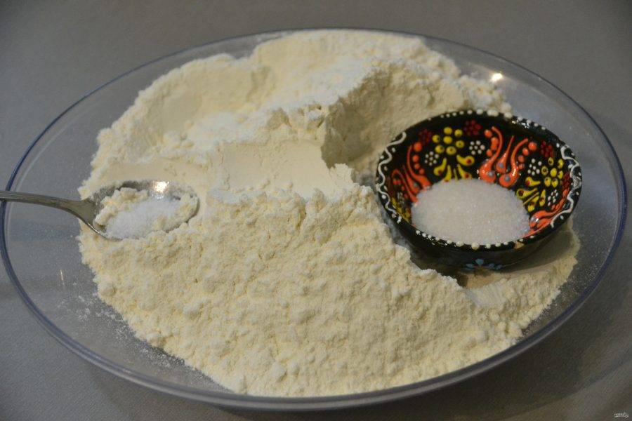 В теплое молоко добавьте дрожжи и сахарный песок.