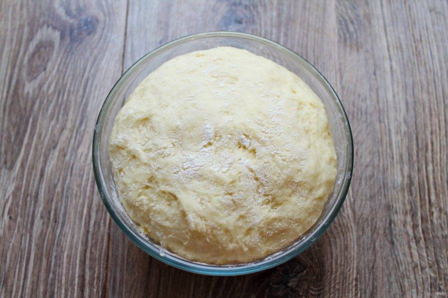 Замесите мягкое, не липкое и гладкое тесто. Выложите его в глубокую миску, накройте.