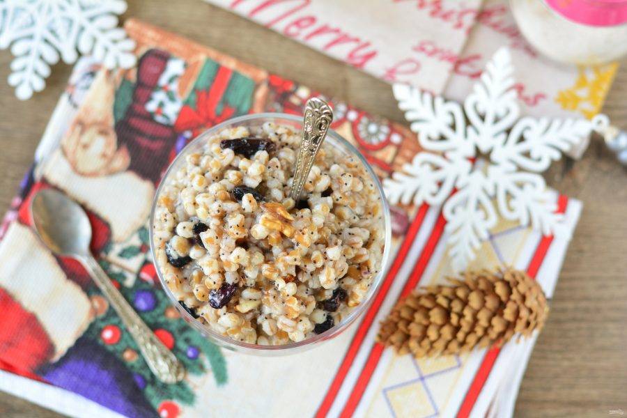 В канун Рождества приготовьте вкусную и сладкую кашу из пшеницы. В качестве добавок используйте мак, орехи и изюм. Берите на заметку рецепт!