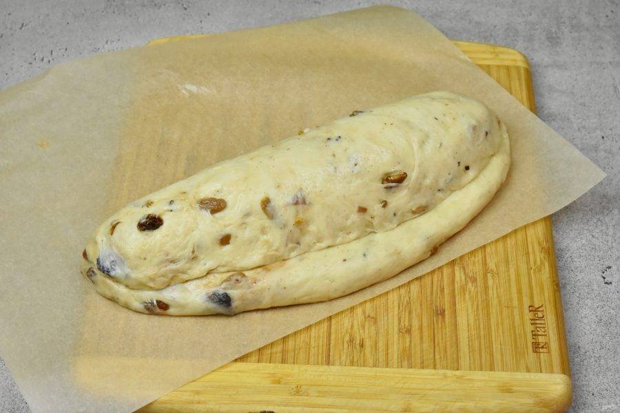 Заготовки штолленов накройте кухонным полотенцем и оставьте на расстойку перед выпеканием минут на 30-40.