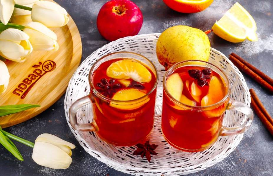 Ароматный глинтвейн в рождественский вечер не только согреет, но еще и подарит всем хорошее настроение. Вы можете сделать его на основе сока или отвара фруктов, с добавлением любого сорта вина.