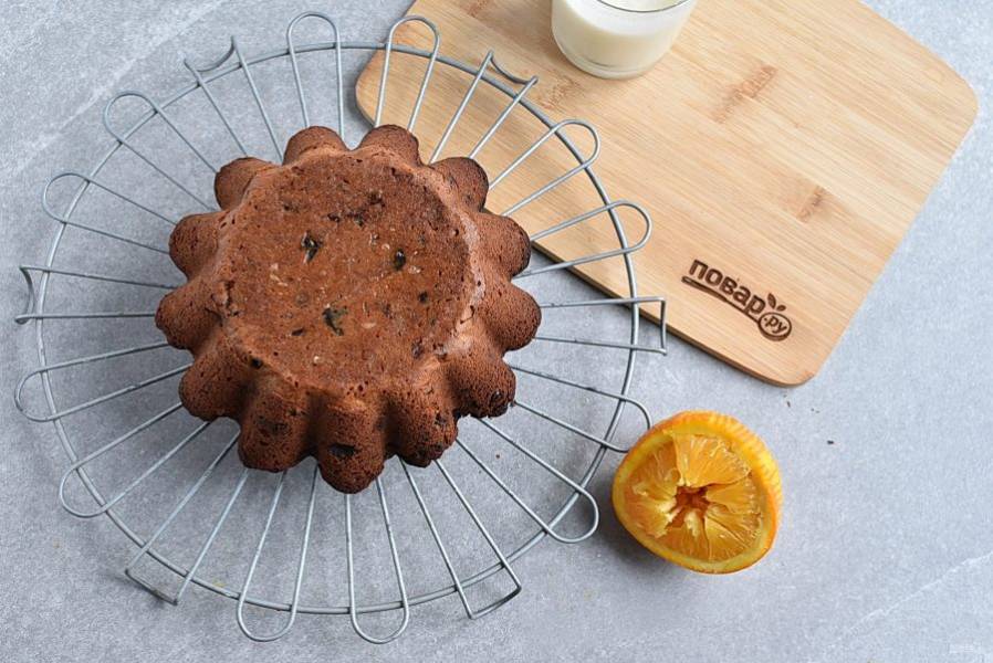 Готовый кекс выложите на решетку и полейте соком второй половины апельсина. Дайте полностью остыть.
