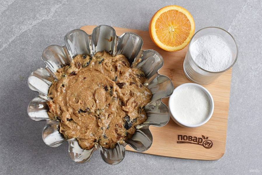 Переложите тесто в обильно смазанную сливочным маслом форму для кекса.
