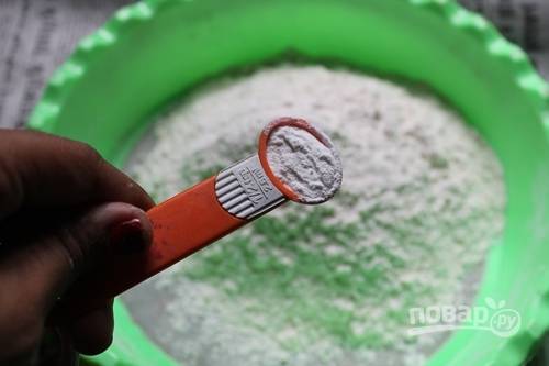 9. В глубокую мисочку просейте сухие ингредиенты: муку, соль, разрыхлитель.