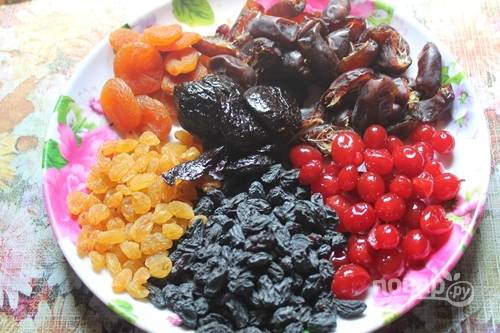 1. Первым делом соберите все сухофрукты, которые вы планируете использовать. При необходимости нарежьте, например, курагу или чернослив более мелко.