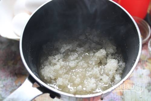5. Для начала нужно сварить карамельный сироп. Соедините сахар и воду в небольшом сотейнике, поставьте на огонь.