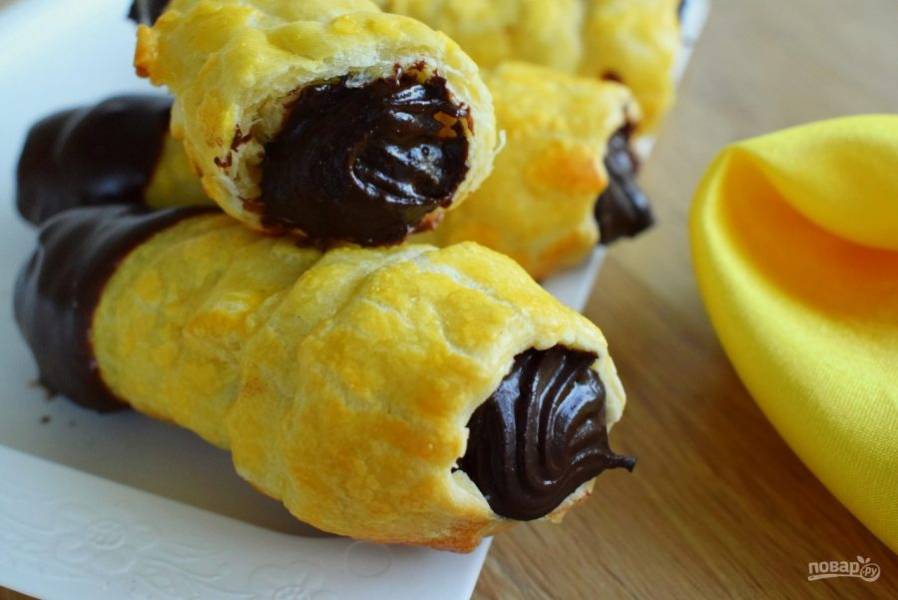 Рожки, наполненные шоколадным кремом, это мечта любого ребенка и взрослого, которые любят шоколад! Легкое хрустящее тесто и много-много шоколадного крема! Очень вкусно! Устроим себе праздник!