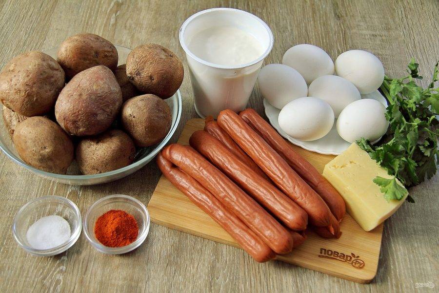 Подготовьте все ингредиенты. Картофель и яйца заранее отварите и остудите.