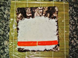 На пленку выложить лист водоросли нори.