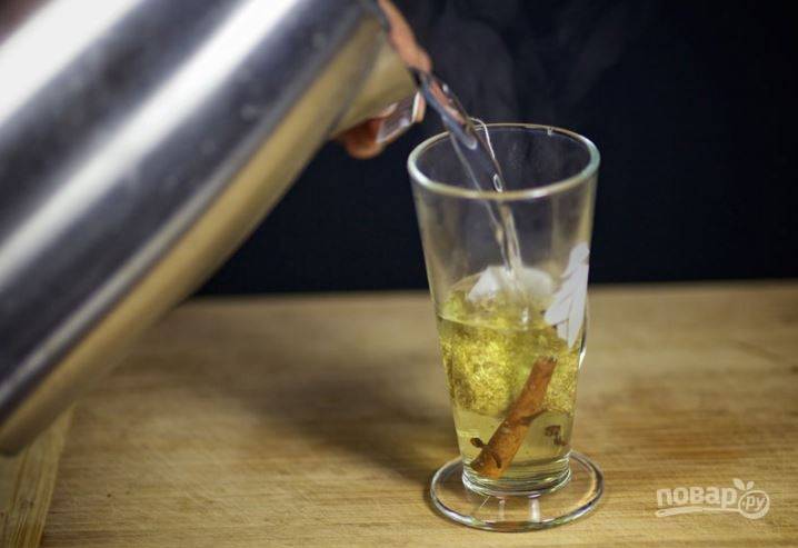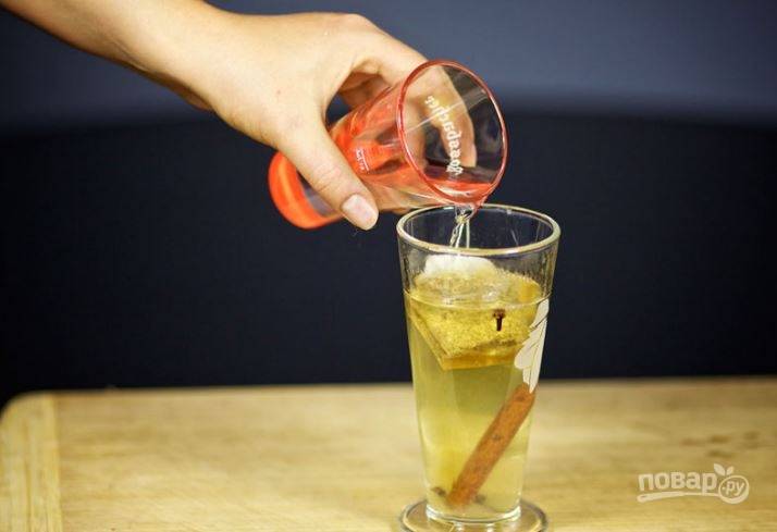 2. Кипятком залейте пакетик чая, добавьте палочку корицы, гвоздику.