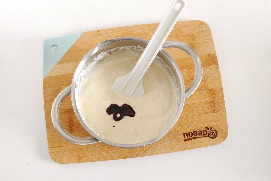 Перемешайте все еще раз аккуратными движениями и добавьте краситель.