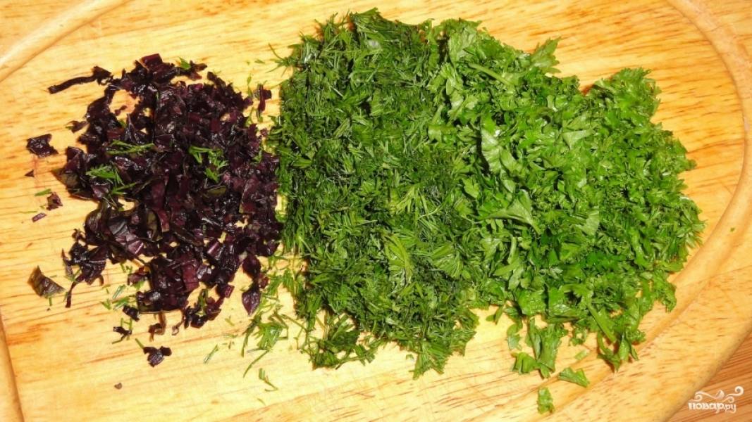 Рубим зелень. Я обычно беру петрушку, базилик укроп.