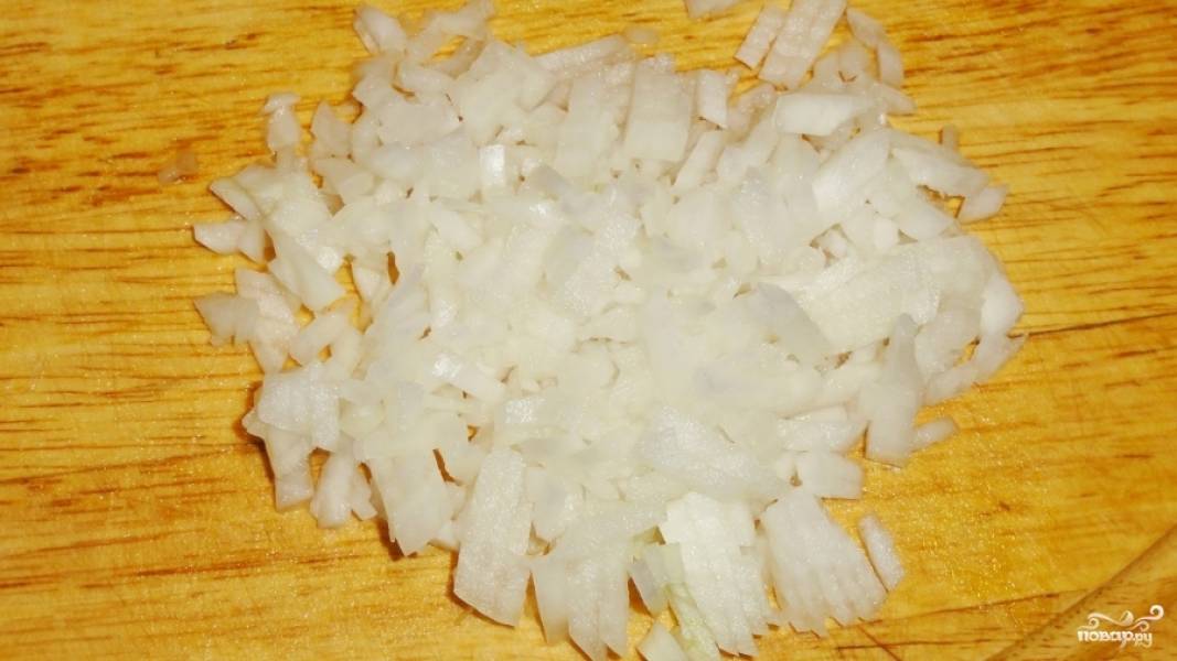 Мелко режем лук.