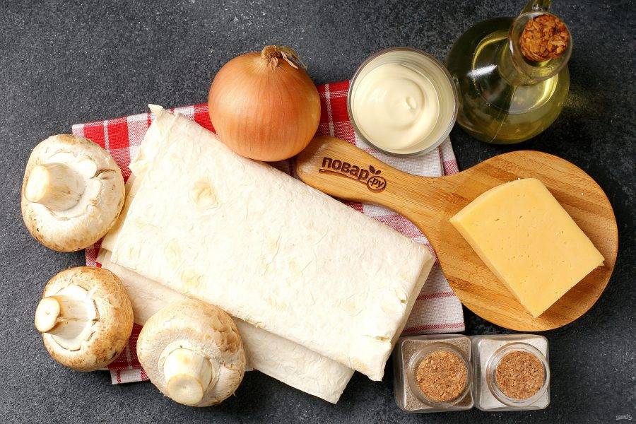Приготовить рулет из лаваша с шампиньонами можно как для повседневного, так и для любого праздничного стола. Закуска получается сытная и очень вкусная, а набор ингредиентов минимален.