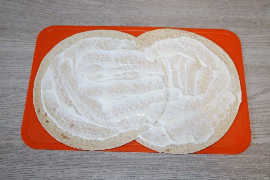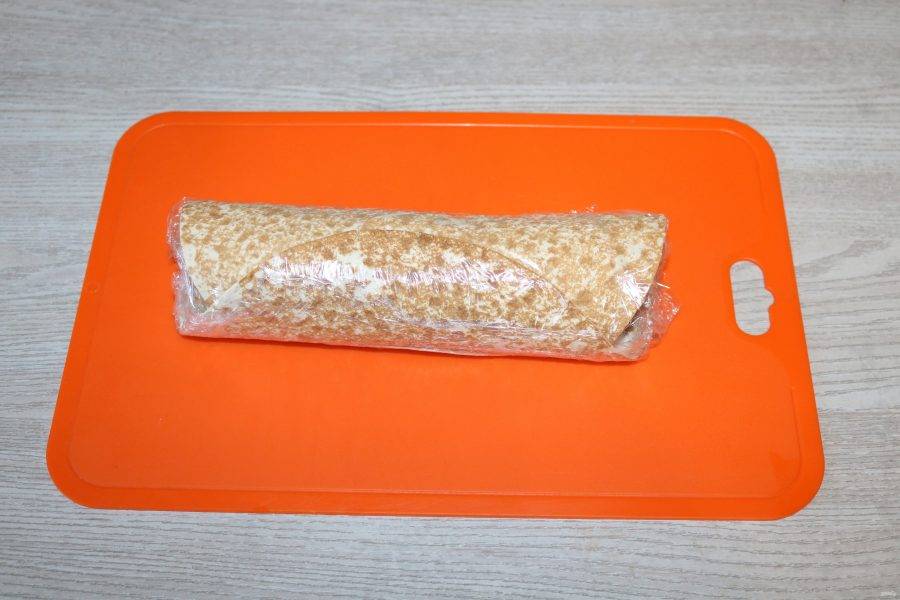 Закрутите рулет. Заверните в пищевую плёнку, отправьте в холодильник за 30-60 минут.