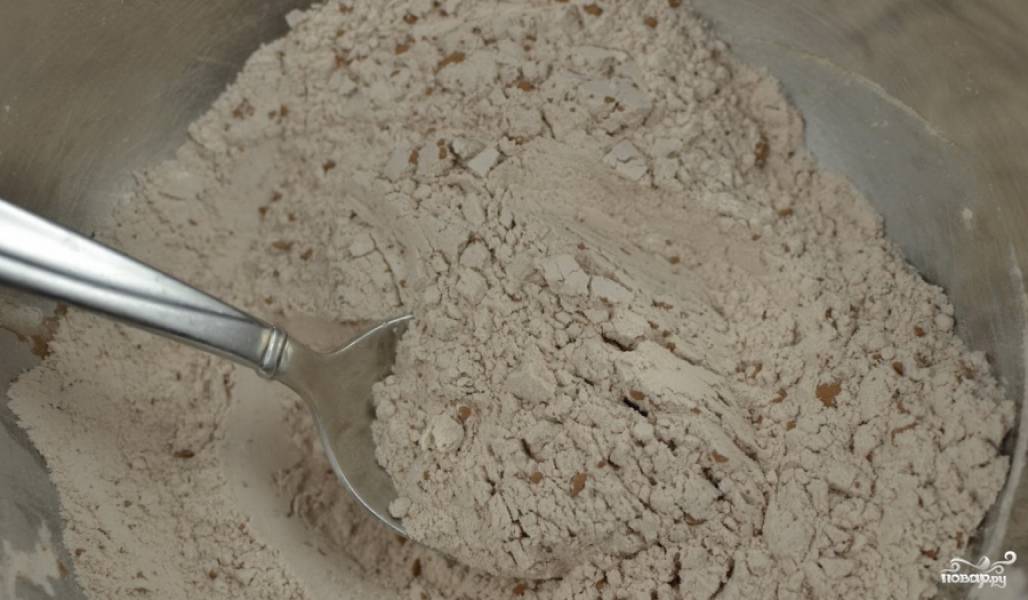 Сухую смесь замешиваем в ячную смесь. Затем заливаем два небольших противня, застеленных бумагой для выпекания, и отправляем выпекаться в духовку (180 гр) примерно на 12 минут.