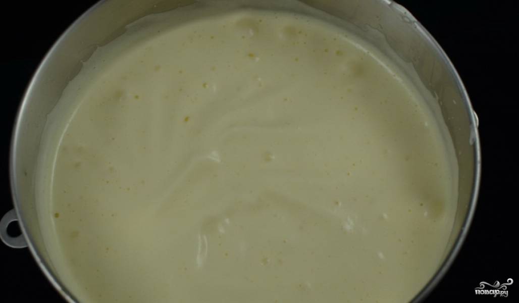 Яйца взбиваем миксером вместе с сахаром. Масса должна увеличиться в объеме в два раза.