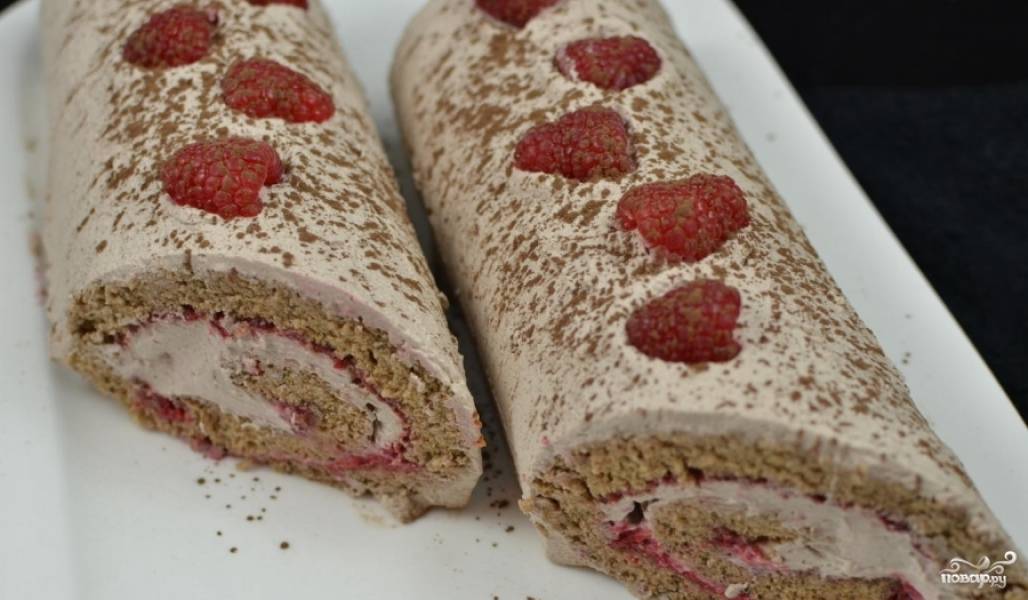 Рулет с малиной - очень вкусное угощение к любому чаепитию. Довольно опасное развлечение для тех, кто следит за своей фигурой, но в небольших количествах этот невероятно вкусный рулет допустим :)