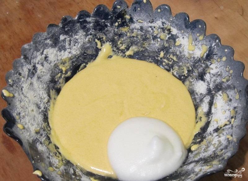 4. Белки аккуратно вводим к желткам.