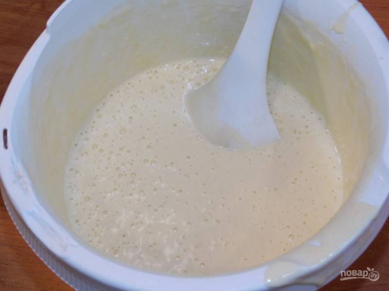Для приготовления рулета взбейте яйца с сахаром в пышную пену.