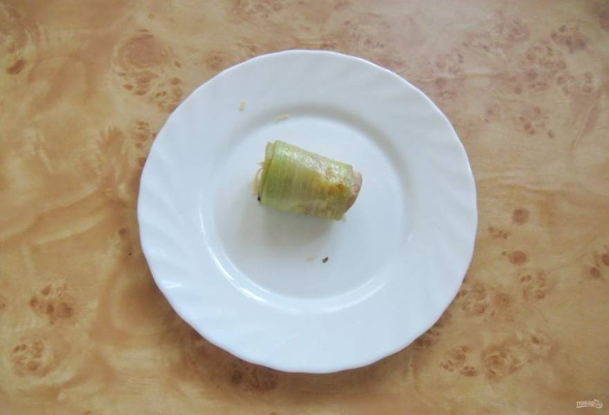 Рулетики с шампиньонами и сыром готовы.