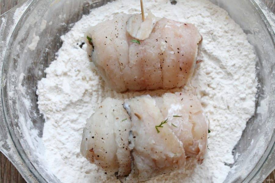 Каждое филе сверните в плотный рулетик и заколите конец зубочисткой.